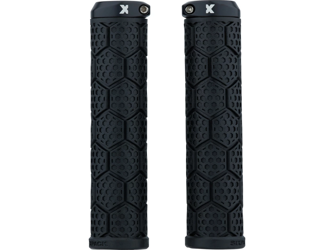 Die Sixpack Racing D-Trix AL Lenkergriffe haben einen eher breiten Durchmesser von 33 mm und weisen neben einem griffigen Wabendesign einen Klemmring aus CNC-gefertigtem Aluminium auf.